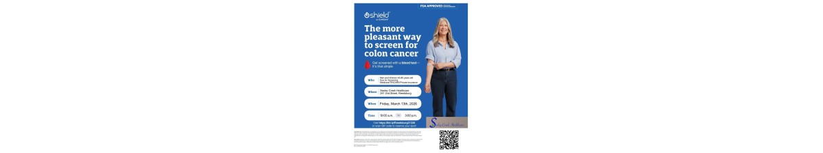 The Shield™ blood test by Guardant is an FDA-approved screening test that provides a simple way to screen for colon cancer with a blood draw. This screening opportunity is available for men and women ages 45–85 who are due for screening and have Medicare, TRICARE, or private insurance.