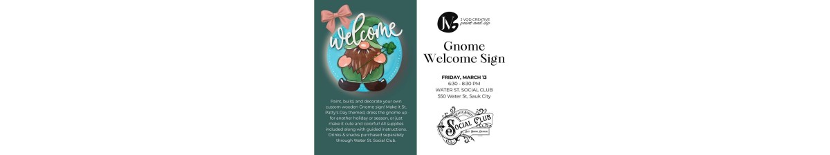 Gnome Welcome Sign – Paint, Build & Sip Night