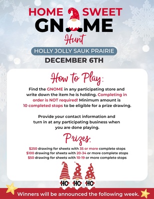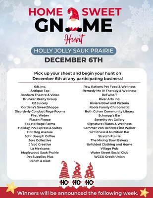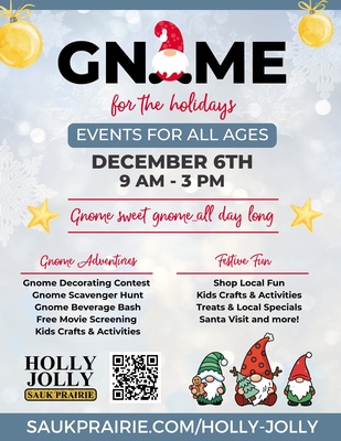 Get ready to feel the magic of the season at Sauk Prairie’s annual holiday celebration! This year’s theme, “Gnome for the Holidays,” brings a touch of whimsy and cheer to downtown as we gather to shop, celebrate, and make memories together.