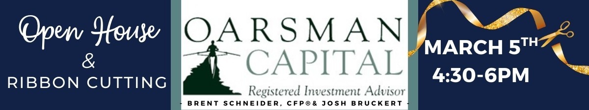 The open house will take place from 4:30–6:00 PM, with the ribbon cutting ceremony at 5:00 PM. Enjoy light appetizers and refreshments while connecting with Brent Schneider, CFP®, Josh Bruckert, and the Oarsman Capital team, and learning more about their services and commitment to the Sauk Prairie community.