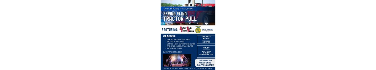 Get ready for an evening of horsepower, excitement, and community fun at the Sauk Prairie FFA Alumni Spring Fling Tractor Pull!