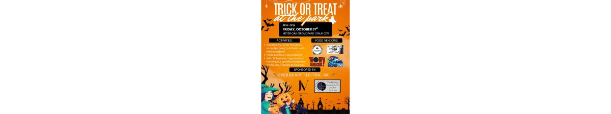 Get ready for a spooktacular evening of family fun at Trick or Treat at the Park! Join us for an evening filled with treats, games, and community spirit in the heart of Sauk City.